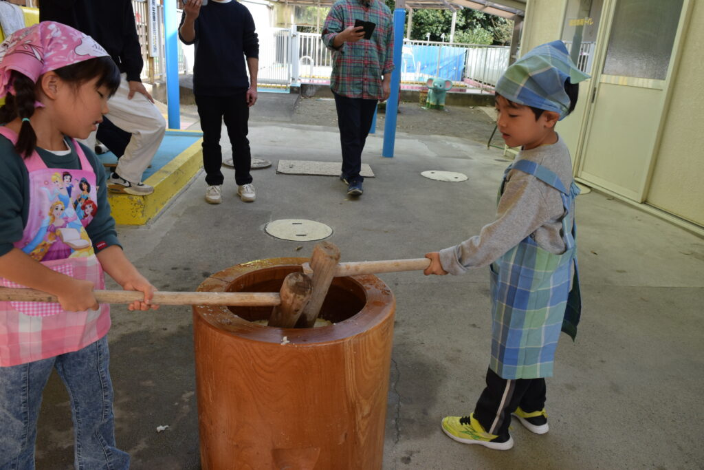 もちつき(つきたてのお餅を美味しく食べます)